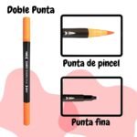 – Doble punta: punta fina para detalles y escritura precisa, y punta pincel para trazos artísticos.