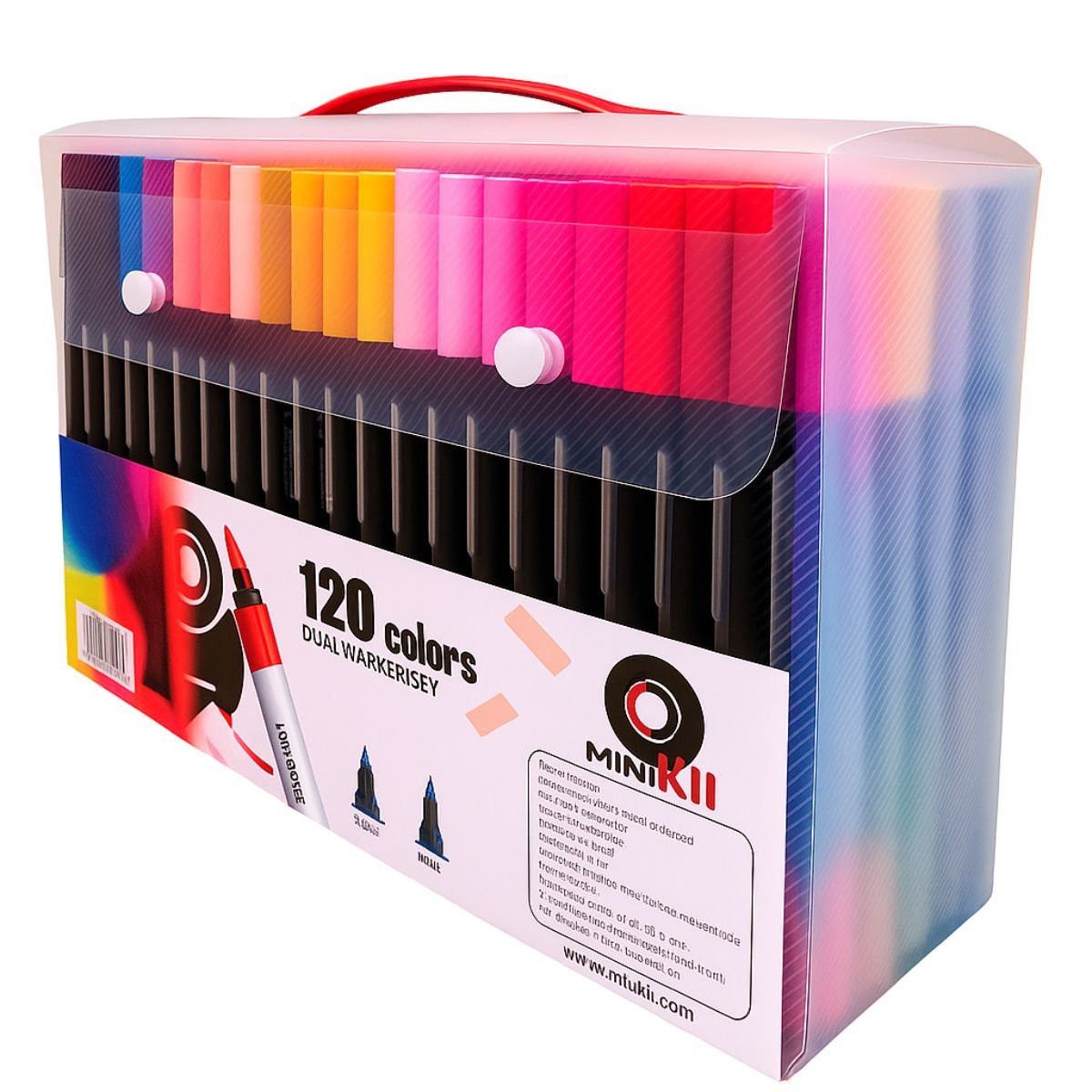 KIT DE 120 PLUMONES DOBLE PUNTA MARCADORES – Punta Fina y Pincel